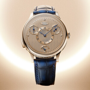 時計は、彼らの”最初の月面歩行”からインスパイアされたデザインとなっており、9時位置のサブダイアルには月面に降り立つバズ・オルドリンの姿が描かれているほか、ケースバックには月面に残した足跡がレーザーエングレービングで施されるなど、アニバーサリー・モデルにふさわしい意匠が盛り込まれている。