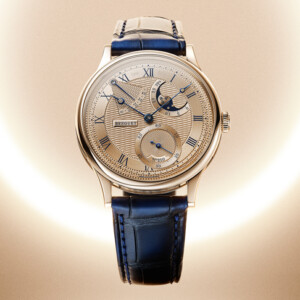 仕様:スモールセコンド、クロノグラフ、18Kムーンシャインゴールド製ベゼル、ナイアードロック式ケースバック
