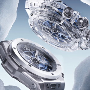 2021年、オンリーウォッチに出品される特別なタイムピースが「ビッグ・バン トゥールビヨン オンリーウォッチ」です。サファイアクリスタルで製作された透明のケースとオレンジのベゼルは、ウブロの卓越した技術の象徴であると共に、オンリーウォッチ 2021のカラーコードを示しています。同じくサファイアクリスタル製のダイアルからは、2021年1月に発表された新しい自社製の自動巻きトゥールビヨンムーブメント(Cal.MHUB6035)の機構を眺めることができます。時針・分針にはスーパールミノバが塗布され、数字にはオレンジが施されています。サファイアクリスタル製ケースバックには、「Piece Unique(ユニークピース)」の文字とオンリーウォッチのロゴが刻印されています。また、簡単にストラップを交換することができる「ワンクリックシステム」が採用され、2本のストラクチャード(ライン入り)ラバーストラップ(透明とオレンジ)を組み合わせてお楽しみいただけます。