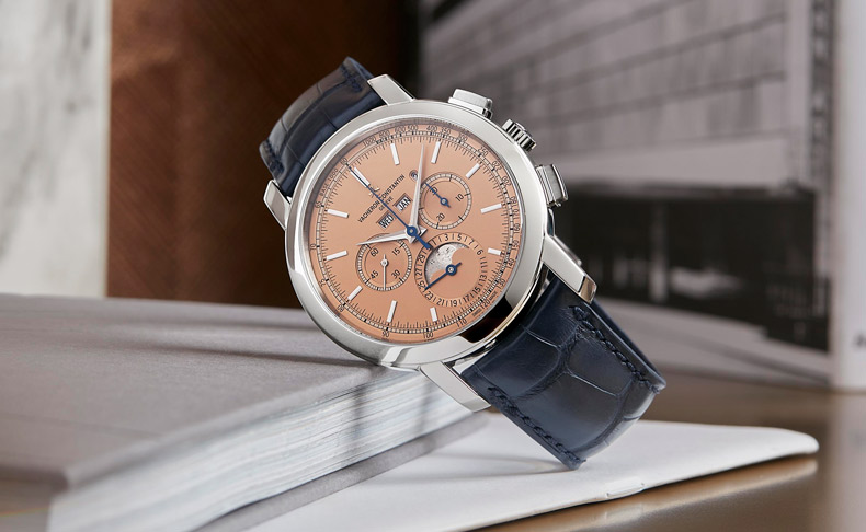 ヴァシュロン・コンスタンタンは、プラチナケースにサーモンカラーダイヤルを組み合わせた新しいタイムピースを発表します。クラシックな雰囲気を組み合わせたこのモデルは毎年限定生産され、ヴァシュロン・コンスタンタンのブティックのみで販売されます。この新しいフェイスの「トラディショナル・パーペチュアルカレンダー・クロノグラフ」は、自社製キャリバー1142 QPを搭載しています。このムーブメントは複雑機構のパーペチュアルカレンダーを備え、高級時計製造の最も伝統的な手法で作られた、名声を博すクロノグラフ・ムーブメントです。