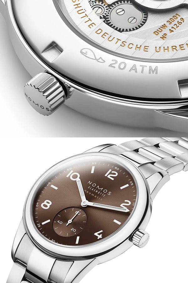 新作「クラブスポーツ ネオマティック39 インディアンサマー」はタバコ(ブラウン)、アンバー(ブロンズ)、スモーク(グレイブラウン)の3色で登場です。トレンドに敏感で時計好きな方を満足させる、深くシックに輝くカラー、機能と美しさを備えた構造、その官能的な存在は腕から離せなくなるはずです。従来のクラブスポーツはケースサイズ37と42の2サイズで展開。「これは歴史的瞬間です!我々は実に魅力的なサイズを提案します!」クラシックなサイズである39の誕生を、ノモスグラスヒュッテの CEO のウヴェ・アーレントは喜びとともに語ります。