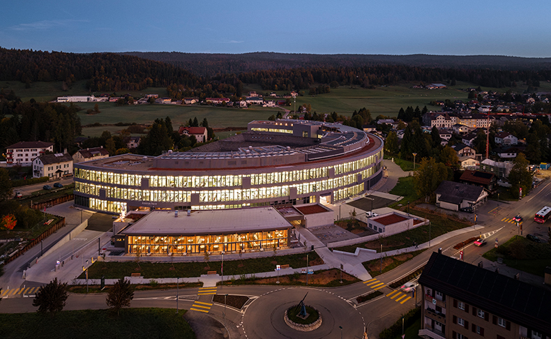 エネルギー効率の面では、産業機器から回収される熱に加え、隣接する「Brassus Bois(ブラッシュ森)」木材燃料ヒーティングプラントからの再生可能エネルギーを補完的に利用。建設初期には、駅付近の土壌を再利用して輸送による環境負荷を低減するなど、建設段階から持続可能性に配慮しています。さらに、規制以上の面積を備える太陽光パネルの設置により、追加の電力供給も確保しています。