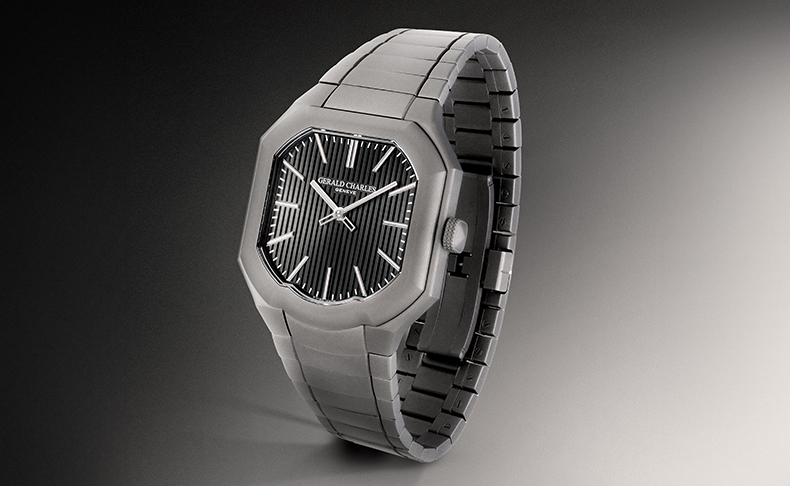 スリムで汎用性が高く、一目でジェンタの作風とわかるこの新作は、現代的な特性をさらに強化。スチール製ケースは、ジェンタ氏が先駆けて「貴金属に匹敵する素材」と位置付けたスチールの価値を継承しつつ、より深みのある色調と建築的な存在感で表現されています。