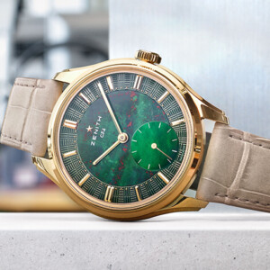 サファイアガラス越しにさりげなく光沢を湛えるマザーオブパールの文字盤は、入念な計算のもと、華美な装飾感が抑えられています。光は文字盤の表面全体を行き来し、時間帯によって印象を少しずつ変化させます。オリジナルのエル・プリメロの系譜に連なる、3時・6時・9時位置の重なり合う象徴的なカウンターはそのままに、ファセットカットを施した針とアプライドインデックスがどのような環境下でも視認性と精度を確保します。