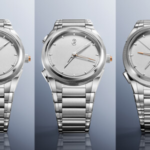 メゾンのシグネチャーであるプラチナ製のローレット加工ベゼルが、ダイヤルの純粋性と響き合い、なめらかで自然に連なる一体型のブレスレットは、ケースの建築的構造を拡張させます。