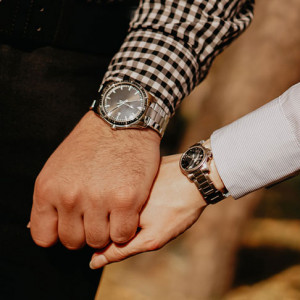 ケース素材:ポリッシュ加工と、縦方向にサテンフィニッシュが施されたステンレススティール製