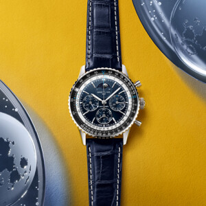 1983年に開発されたフレッチェ・トリコローリは、1年後にクロノマットとして発表されることになったモデルで、ブライトリングの100周年を祝うものとなりました。新しいクロノマット フレッチェ・トリコローリ リミテッドエディションの特徴は、ブルーのダイヤルと同系色のサブダイヤル、そして通常ブライトリングのロゴがあるところに配されたフレッチェ・トリコローリのロゴ。偉大な飛行チームへのトリビュートは限定250本で、ケースバックには「ONE OF 250」の刻印。コレクションの他のモデル同様、バタフライクラスプ式のステンレススティール製ルーローブレスレット仕様です。