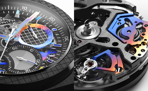 ムーブメント:自動巻、Cal.エル・プリメロ 9004、毎時36,000振動(5Hz)、50時間以上パワーリザーブ
