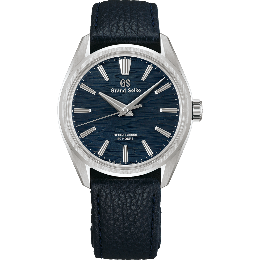 グランドセイコーの真髄と日本の美意識を高い次元で融合させた独自のデザイン文法「エボリューション9スタイル」をベースにした、10振動手巻メカニカルウオッチです。ネイビーカラーのダイヤルは、月あかりに照らされた白樺の樹皮をイメージしました。ステンレススチール製のケースは厚さ9.95mmと薄型に仕上げ、すっきりとしたインデックスやベゼル、ラグの幅が、グランドセイコーのドレスウオッチにふさわしい繊細で優美なる存在感を演出。ムーブメントには、安定した精度につながる毎秒10振動という高い振動数と、最大80時間もの長い持続時間を実現する「キャリバー9SA4」を搭載しています。