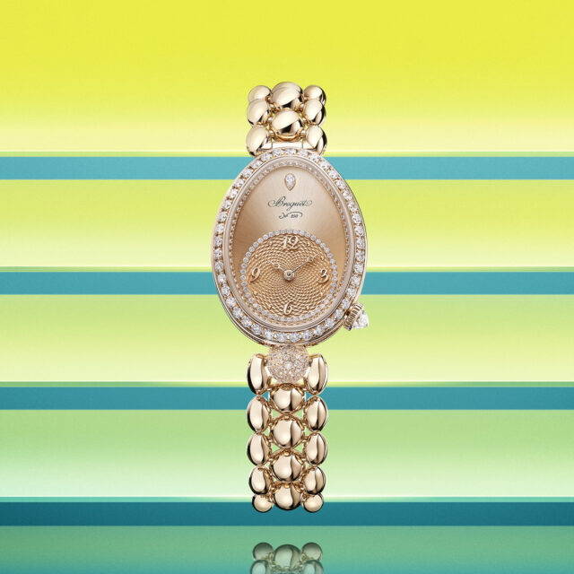 250周年を記念するコレクションの1つで、ナポリ王妃のために製作された世界初のブレスレットウォッチに着想を得たブレゲを代表する一本。王妃の輝きと現代技術の栄華が共鳴するこの一本は、人生の節目を彩る永遠のパートナーに相応しい逸品です。