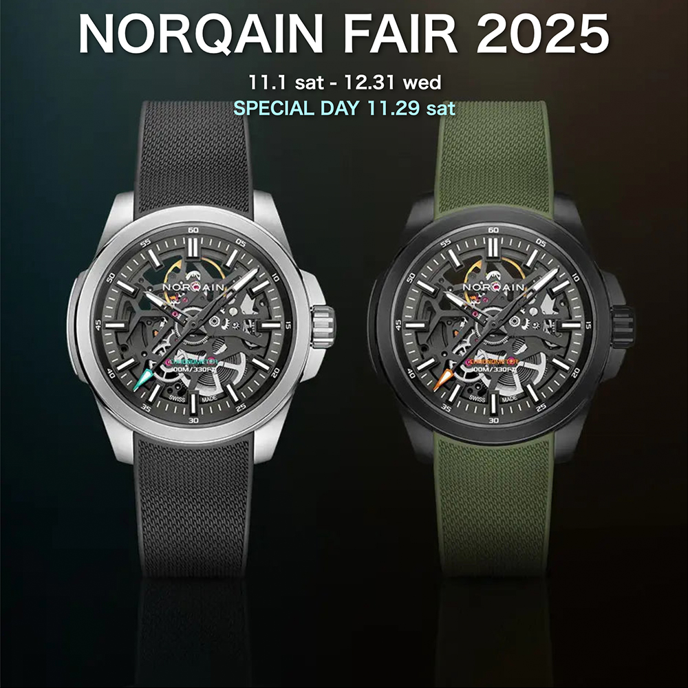 スイスの独立系ブランドとして急成長を続ける NORQAIN(ノルケイン)。その勢いの象徴とも言える特別なフェア「ノルケイン スペシャルデイ」が、11月29日に開催されます。ノルケインは創業からわずか数年にもかかわらず、独自のマテリアル開発、ムーブメントの強化、スポーツウォッチの新しい価値提案など、他ブランドにはない発想力で多くのファンを獲得してきました。