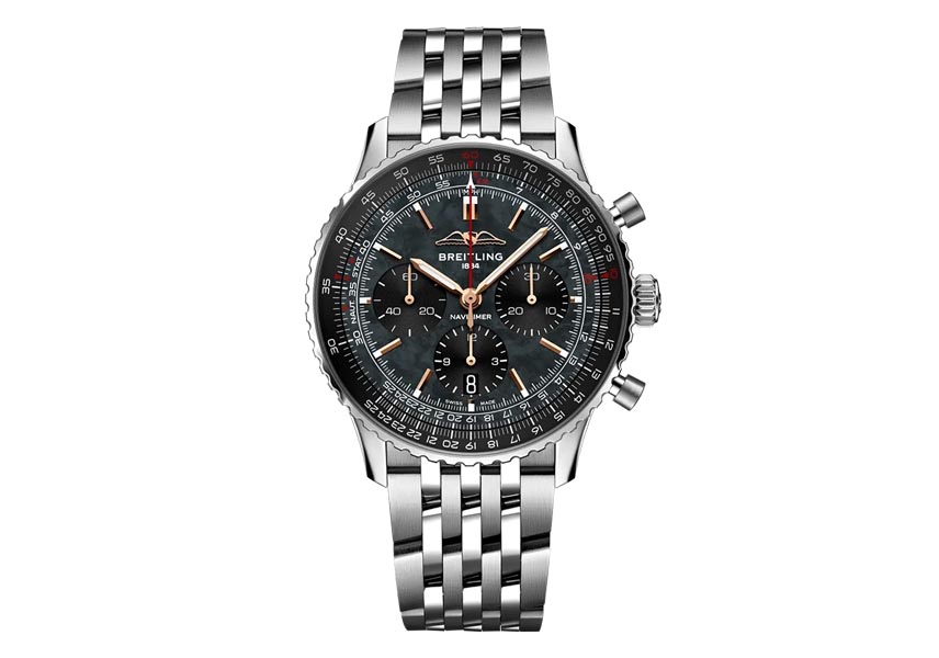 ブライトリングのアイコニックなパイロット向けクロノグラフ。 1952年、創業家3代目のウィリー・ブライトリングは、パイロットが飛行に必要な計算を行うことができる、腕に装備する回転計算尺付きクロノグラフを開発しました。そのモデルは国際オーナーパイロット協会(AOPA)の公式タイムピースとなり、「ナビゲーション+タイマー」、すなわち「ナビタイマー」となりました。