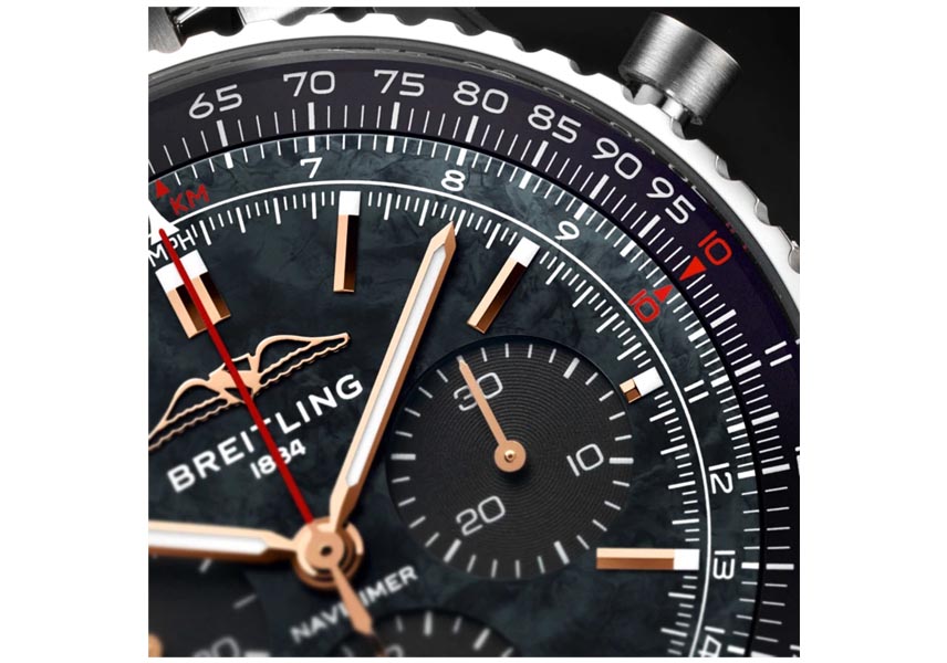 搭載されるのはもちろんマニュファクチュール・クロノグラフ、ブライトリング「キャリバー 01」。サファイアクリスタル・ケースバック越しに、その精緻な動きを眺めていただくことが可能です。